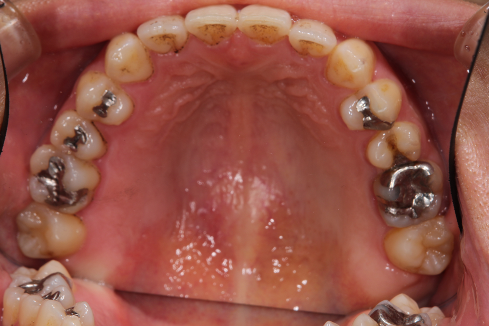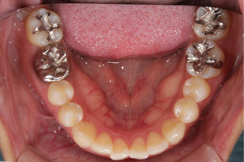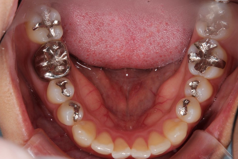 左上は虫歯が大きかったのでゴールドインレーで対応してます。見た目はあまり良くありませんが、ゴールドが一番歴史があり信頼できる方法とも言えます。