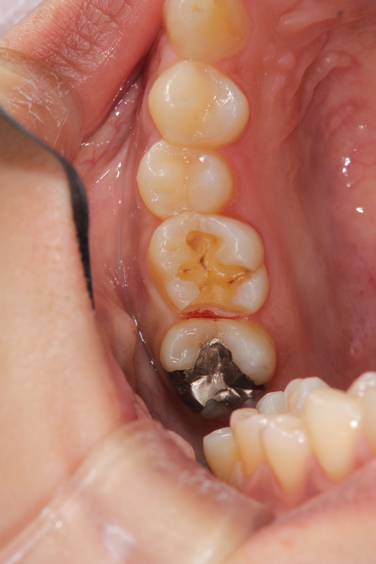 銀歯を外してセラミックインレーを装着した状態です。