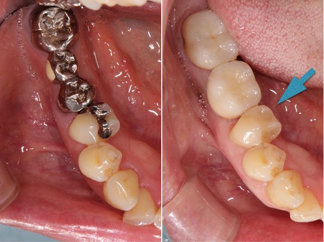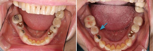 術前術後です。矢印の部分がオールセラミックインレーです。
